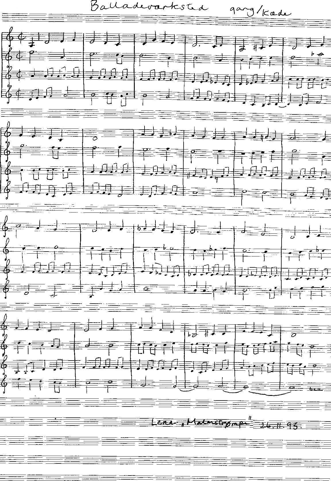 anledning: Ballademelodi af Benny i anledning af Lene Malmstrøm 40 år 25/11 1993 Arstal: 1993sektion: I Anledning AfBallademusikpublikationer:Ballademusik (tryk) Node til Balladeværksted gang/kæde