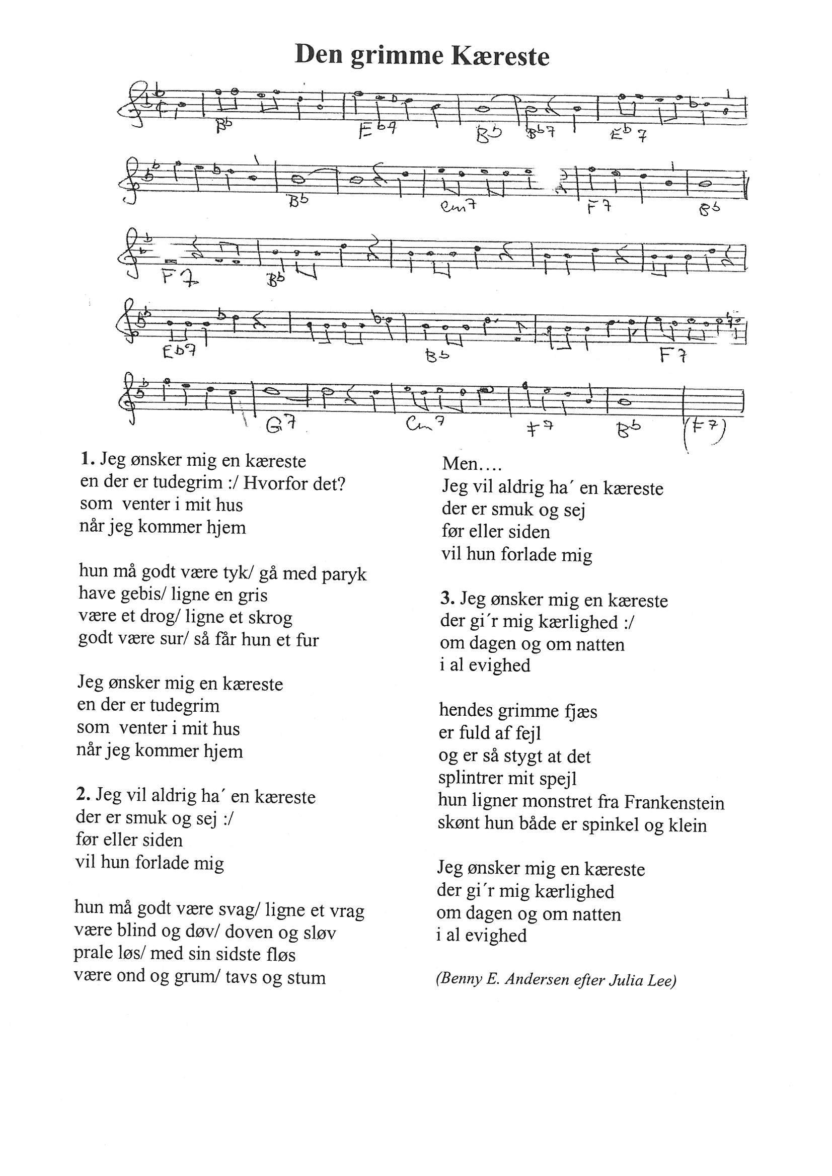 Tekst og node til Den grimme kæreste